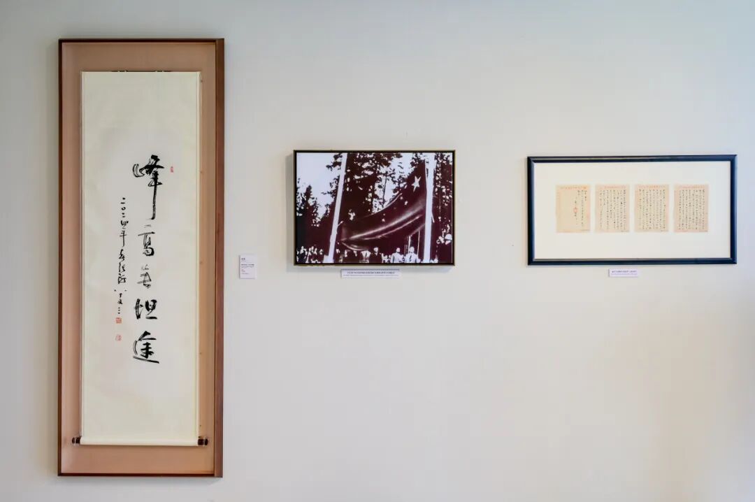非有志者不能至也。由行草书作品《峰高无坦途》、董守义寄钱大钧信件(影印件)、1952年7月29日中国代表团在赫尔辛基奥运村举行升旗仪式的照片共同组成的艺术展第一面展墙,生动讲述着中国与奥运结缘的故事——从最早的申奥设想,到2001年中国申奥成功,再到2015年申办冬奥会成功,“峰高无坦途”就是中国申奥历程的真实写照。