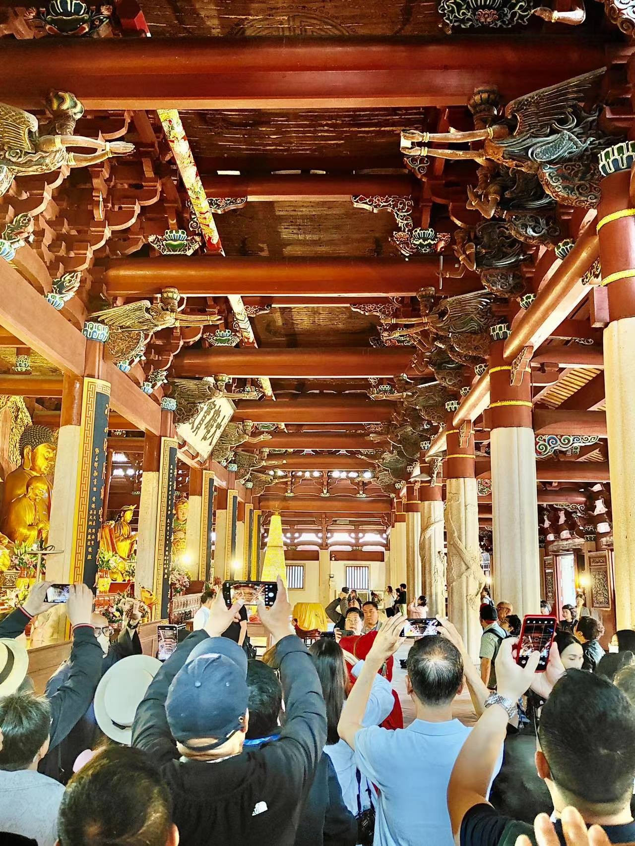 此外,开元寺内的大雄宝殿雕塑技术高超,粱槽间的 24 尊飞天乐伎更是中国国内古建筑中罕见的艺术珍品。殿前月台须弥座的 72 幅狮身人面青石浮雕,以及殿后廊的两根古婆罗门教青石柱,都展现出了开元寺的历史价值和文化底蕴。