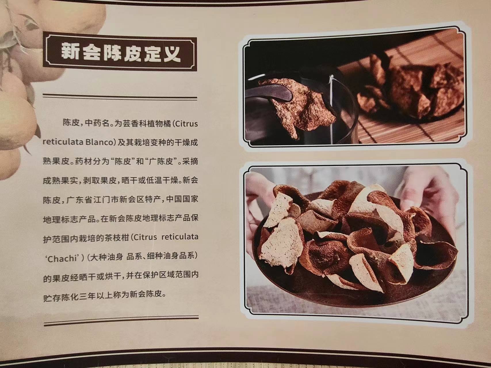 委国侨报讯: 新会陈皮是广东省江门市新会区“土特产”,也是国家地理标志保护产品、中国传统地道药材,有近千年历史传承,其自然环境和人文条件优越,历史蕴藏与传统风俗丰富,造就了独特而最优秀的质量特色 ,具有药食茶同源、食养俱佳的独特价值。享有“一 两陈皮一两金”“千年人参,百年陈皮”之美誉。