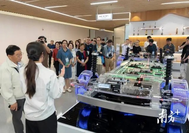 在广汽埃安智能生态工厂和广汽研究院,马来西亚海内外传媒集团主席续炳义不时向讲解员提问,了解广汽集团在关键核心技术方面的发展情况。“这座智能生态工厂实现了生产制造过程零碳排放,代表着新能源汽车制造的全球趋势和未来方向。”他说,愿以赤子之心和海外华文媒体人专业品格,用清晰、理性、真切、客观、公正的声音沟通海内外,向世界讲述广东的经济建设成果和文化繁荣景象。