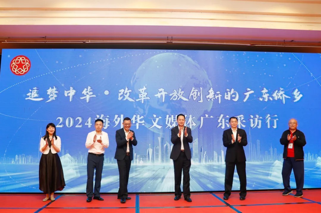 6月6日,由中国侨联指导、广东省侨联主办的“追梦中华·改革开放创新的广东侨乡”2024海外华文媒体广东采访行在广州启动。中国侨联兼职副主席,广东省侨联党组书记、主席李丰出席启动仪式并致辞。广东省侨联党组成员、副主席戴文威主持启动仪式。广东省人民政府新闻办副主任邓鸿,广州市侨联党组成员、副主席童慧等领导,以及来自美国、德国、柬埔寨、埃及、新西兰等19个国家和地区的28家海外华文媒体,5家涉侨中央媒体、5家省内主流媒体和5家侨刊代表参加启动仪式。