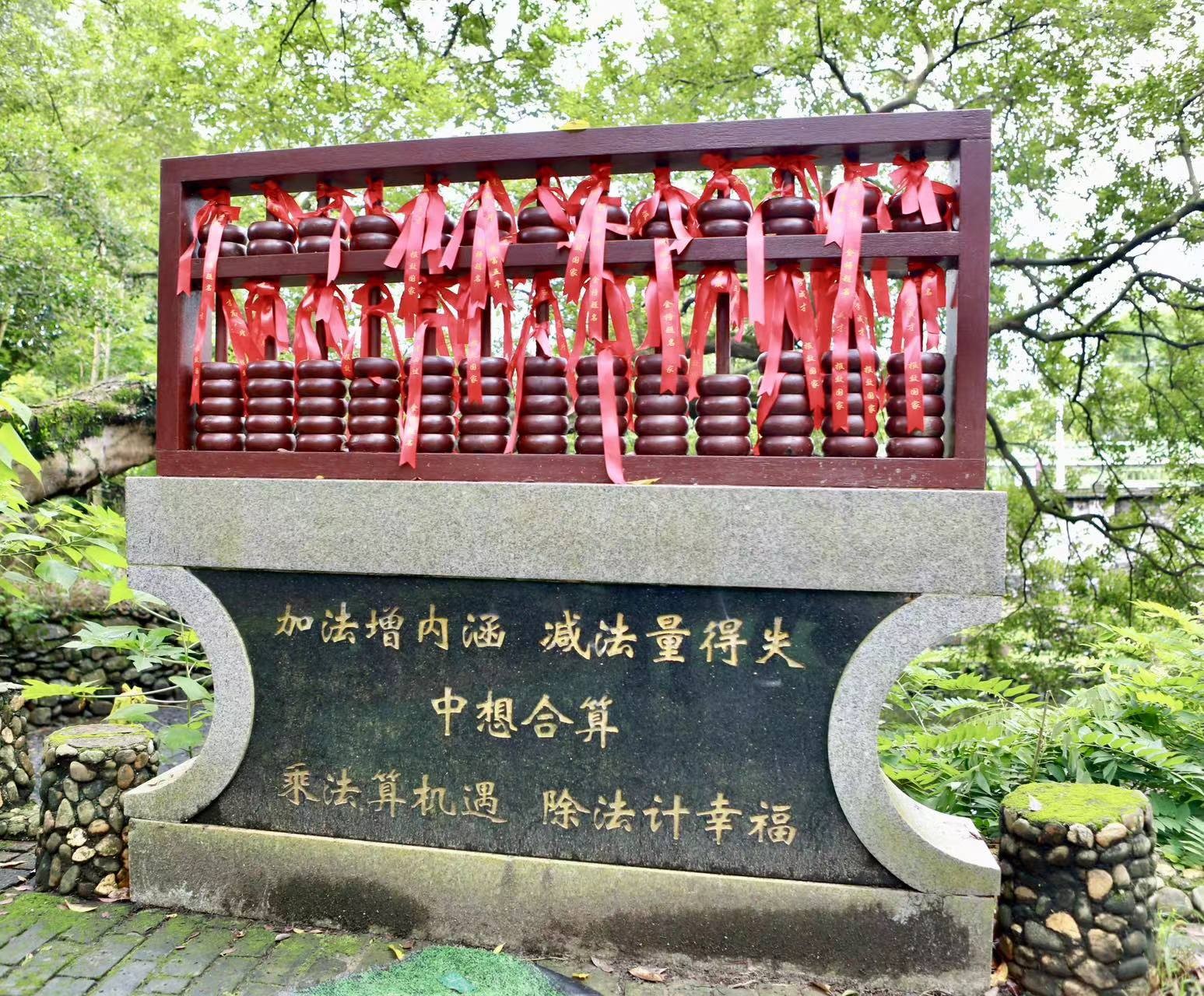 励志园内矗立着一个石算盘,取名“如意算盘”。上书:加法增内涵,减法量得失。中想合算。乘法算机遇,除法计幸福。教育后人要有所为,有所不为。