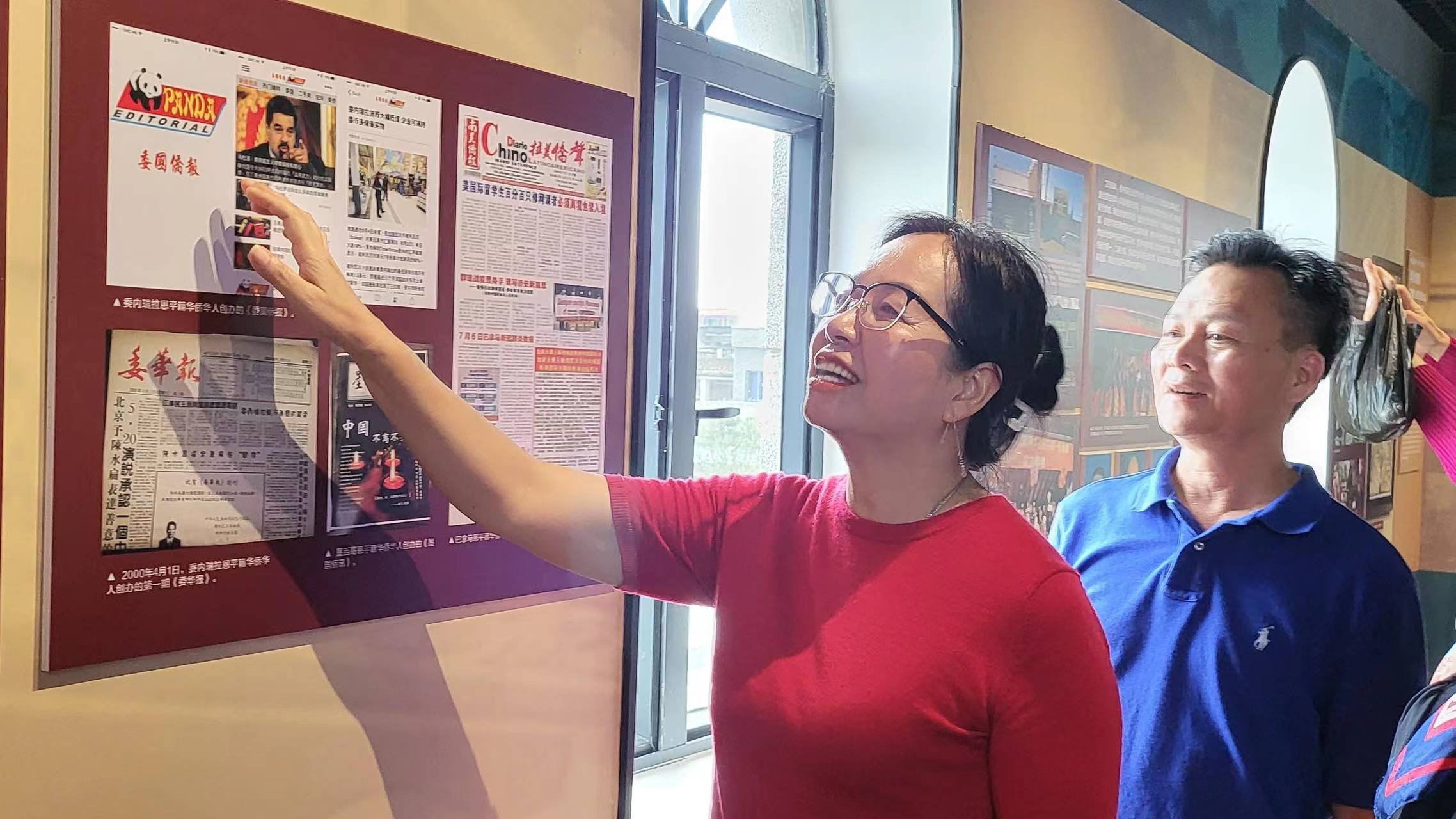 委内瑞拉《委国侨报》副社长郑海燕在展馆惊喜地看到《委国侨报》的图片,非常激动。她介绍说,《委国侨报》成立于1999年,是委内瑞拉第一份中文报纸。经过25年的发展和壮大,如今新增加了9份杂志和5家电台,其中一家更是在全国范围内享有盛誉。郑海燕对此感到无比自豪,并对报社未来的发展充满了期待。