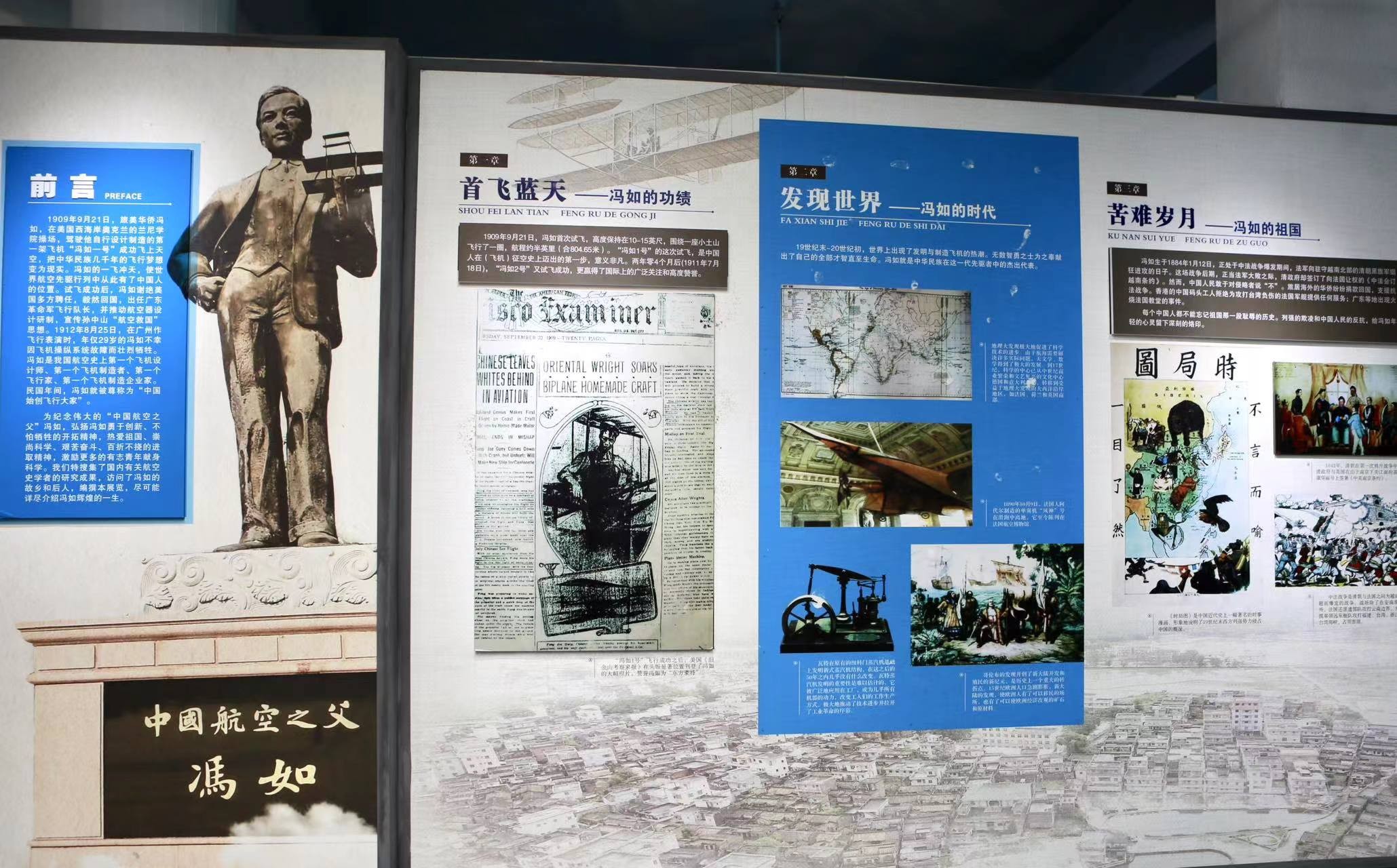 冯如故居内还展出了他的生平事迹以及中国航空发展史等珍贵的文史资料图片。这些展品不仅记录了冯如的一生,也见证了中国航空事业的发展历程。