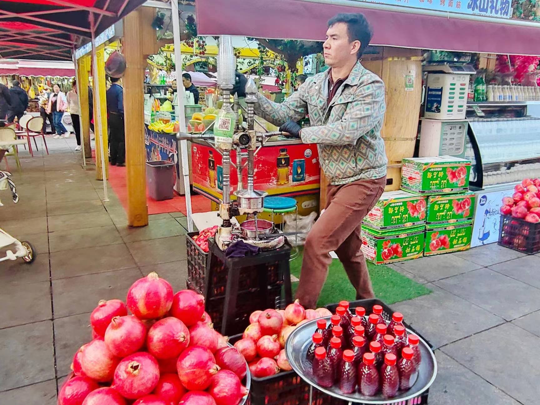 自2018年8月15日开业以来,乌鲁木齐大巴扎步行街迅速成为连接新疆与世界的重要窗口,同时也是展示新疆民族风情、传统美食、非物质文化遗产的重要场所。在这里,海外华文媒体的代表们不仅有机会一览新疆原创文化产品及非遗产品的丰富多样,还品特色美食,欣赏民族音乐,充分感受到了新疆文化的独特魅力与深厚底蕴。
