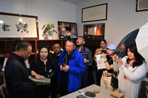洮砚产于甘肃南部, 卓尼县洮砚镇喇嘛崖, 堪称地下宝藏。 洮砚至今已有 1300 多年的历史, 与广东端砚、 安徽歙砚、 山西 澄泥砚齐名, 并称中国四大名砚。6月23日下午,“行走中国·报道中国”活动中来自19个国家和地区的25家海外华文媒体代表一行走进了甘南卓尼县鸿盛洮砚文化艺术馆。