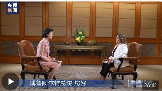 在专访当中,博鲁阿尔特总统多次表示,两国虽然相隔万里,但仍然可以跨越太平洋,像邻居一样紧密拥抱。她说此次访华让她看到了中国的现代化和高水平发展,她希望将秘鲁也建设为一个现代化的国家。我们也期待两国继续深化政治互信、加强务实合作,推动中秘全面战略伙伴关系不断迈上新台阶。