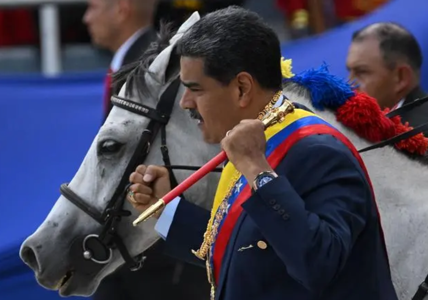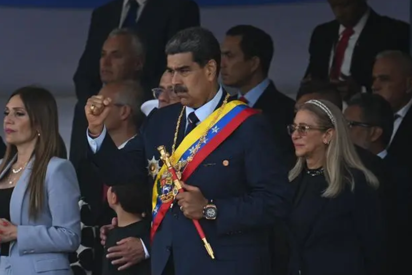 7月5日,在委内瑞拉加拉加斯,委总统马杜罗(前)出席独立日阅兵式。新华社/法新