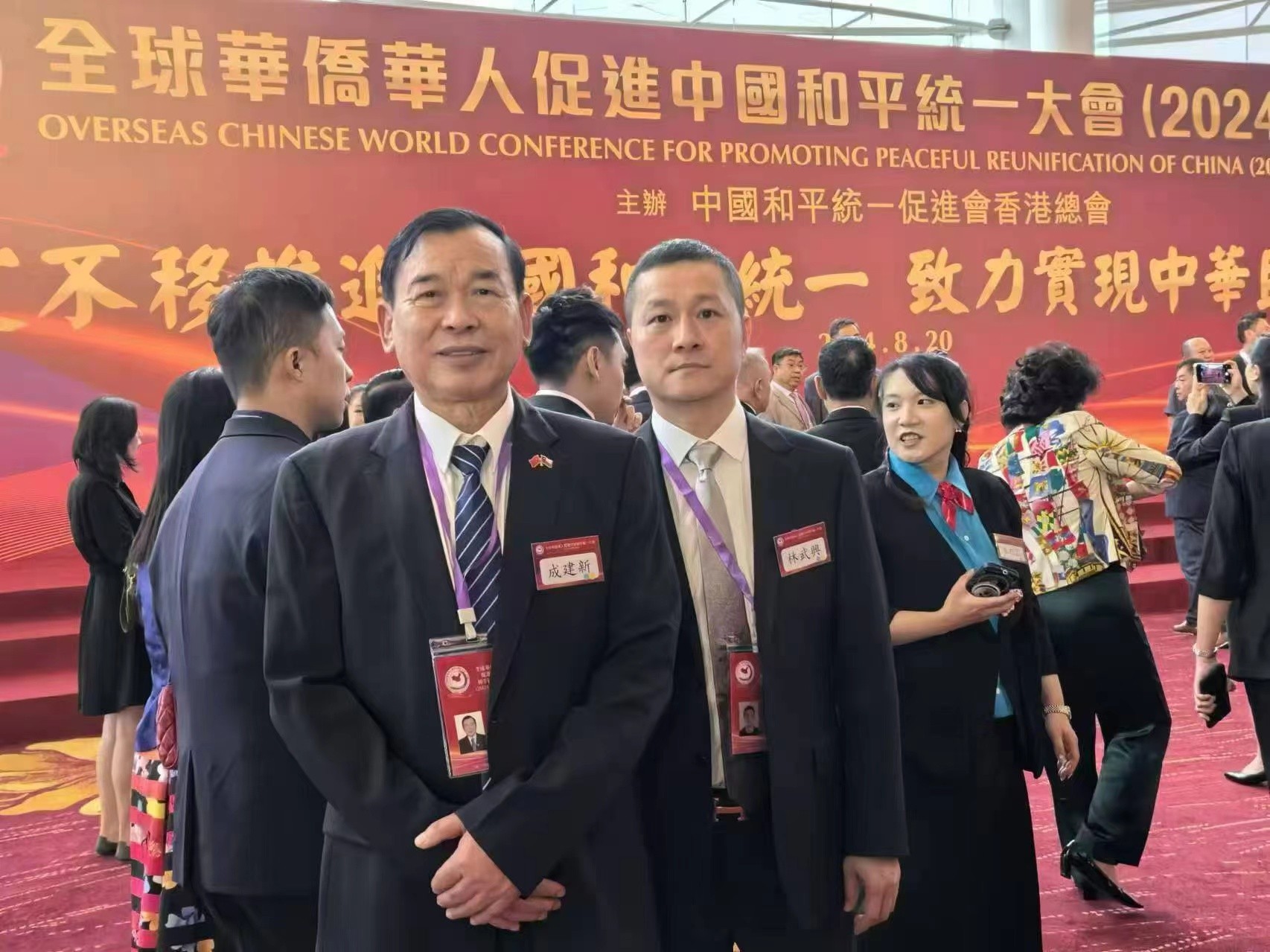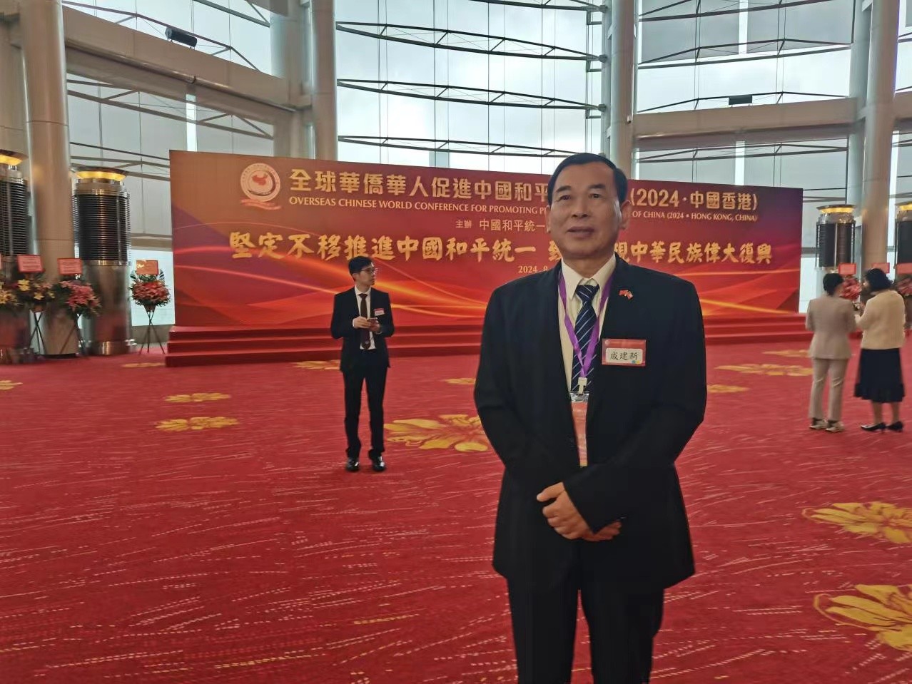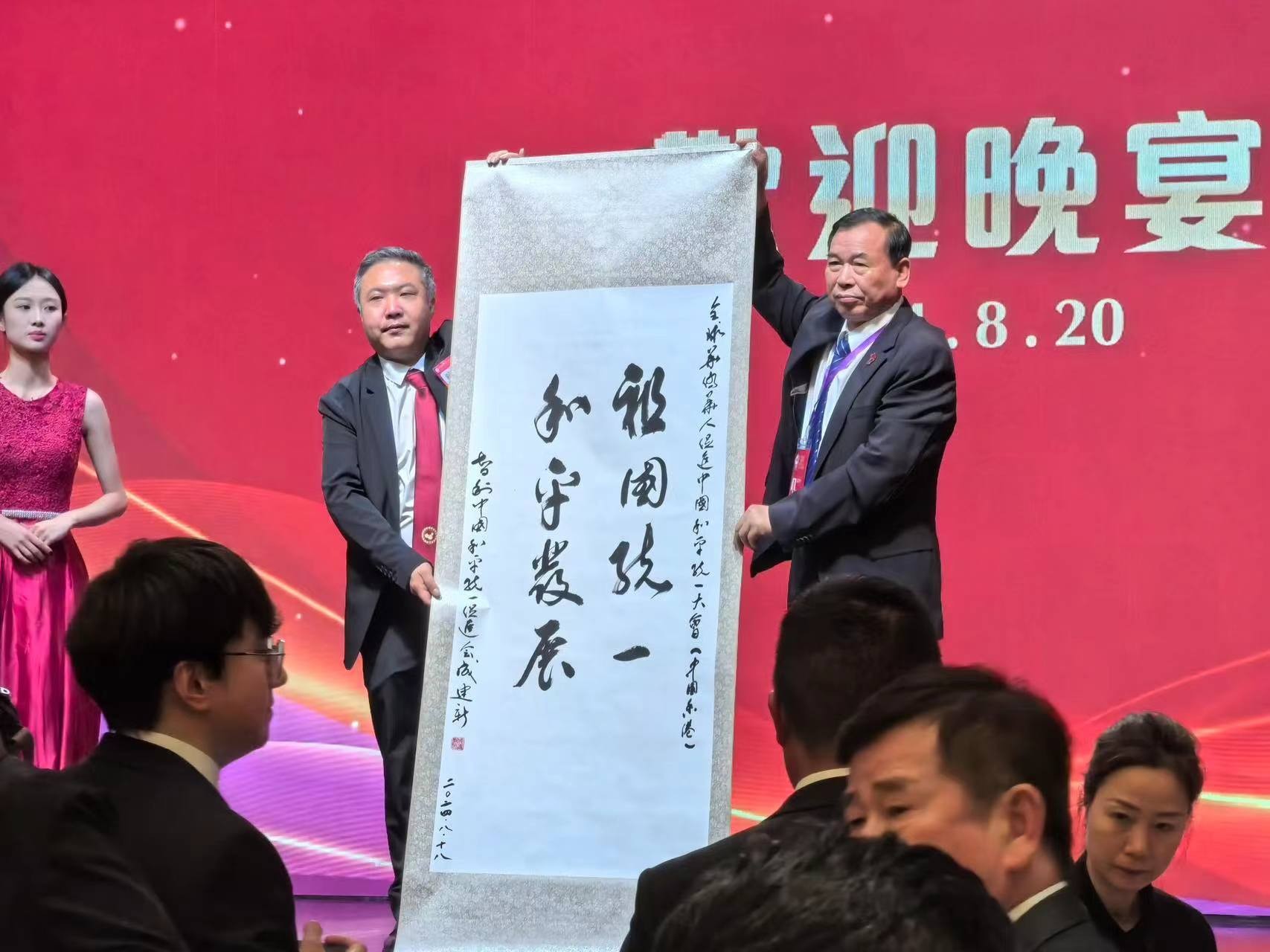 智利中国和平统一促进会会长李小平委托永久荣誉会长成建新,常务副会长林武兴参加本次大会,智利中国和平统一促会会长李小平对大会发了贺信及纪念品表示祝贺。