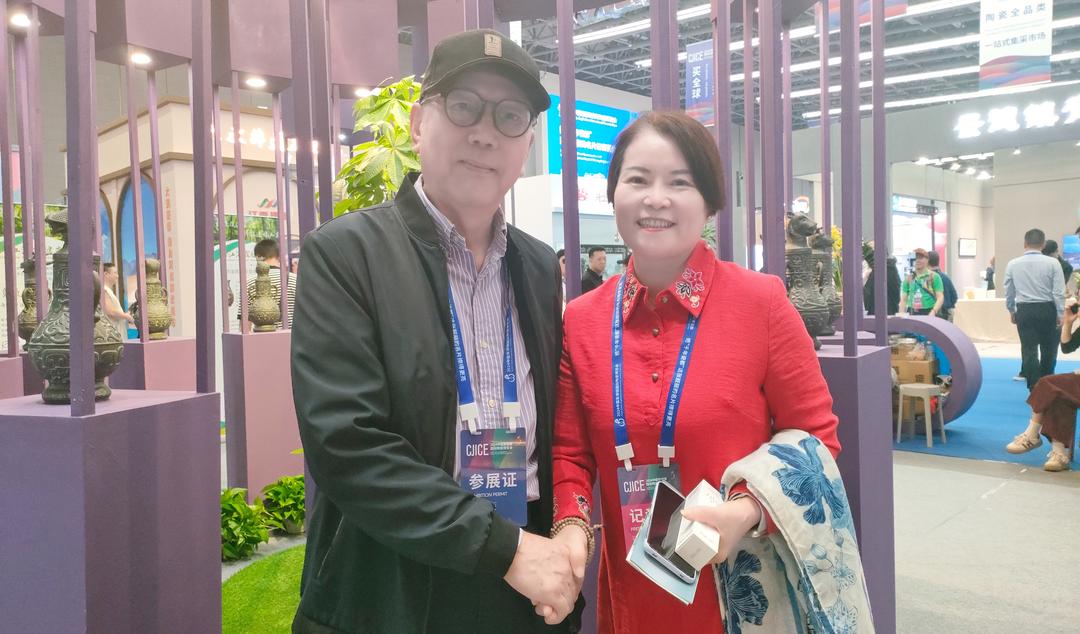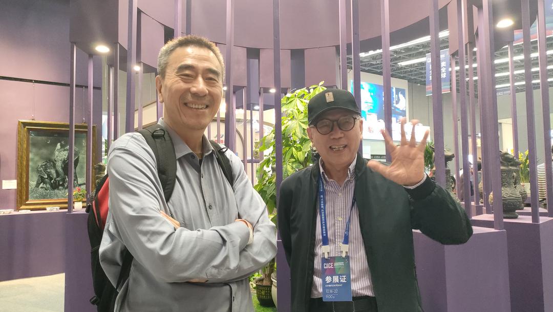在景德镇 2024 瓷博会展厅,受邀参加法国新欧洲集团联合浙江深霖科技共同打造移动的巴马百魔洞全球新闻发布会的来自美国、法国、意大利等十多个国家和地区的华文媒体代表有幸采访到了陶瓷绘画大师钱大统先生。这位 1948 年出生于上海的艺术家,以其独特的艺术风格和创新精神,在国内外艺术界享有盛誉。
