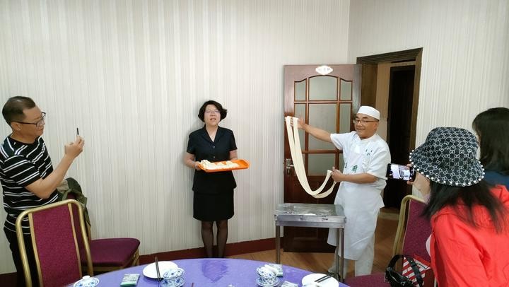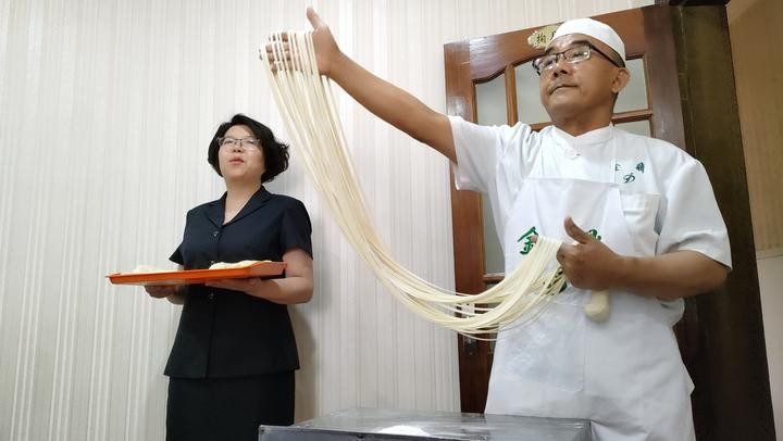 “兰州第一面”四代传人马文斌先生亲自为记者们作演示