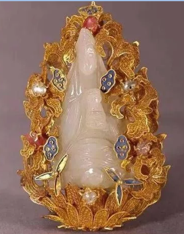 金累丝嵌青玉抱子观音簪(一级文物)