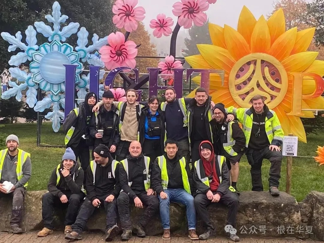 兰洋(右二)与英国彩灯设计安装人员合影