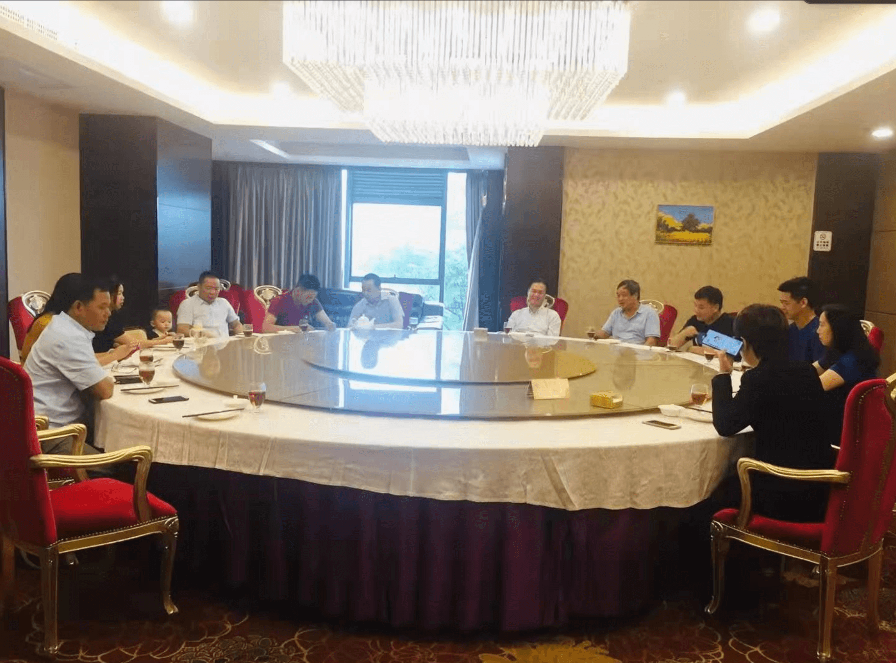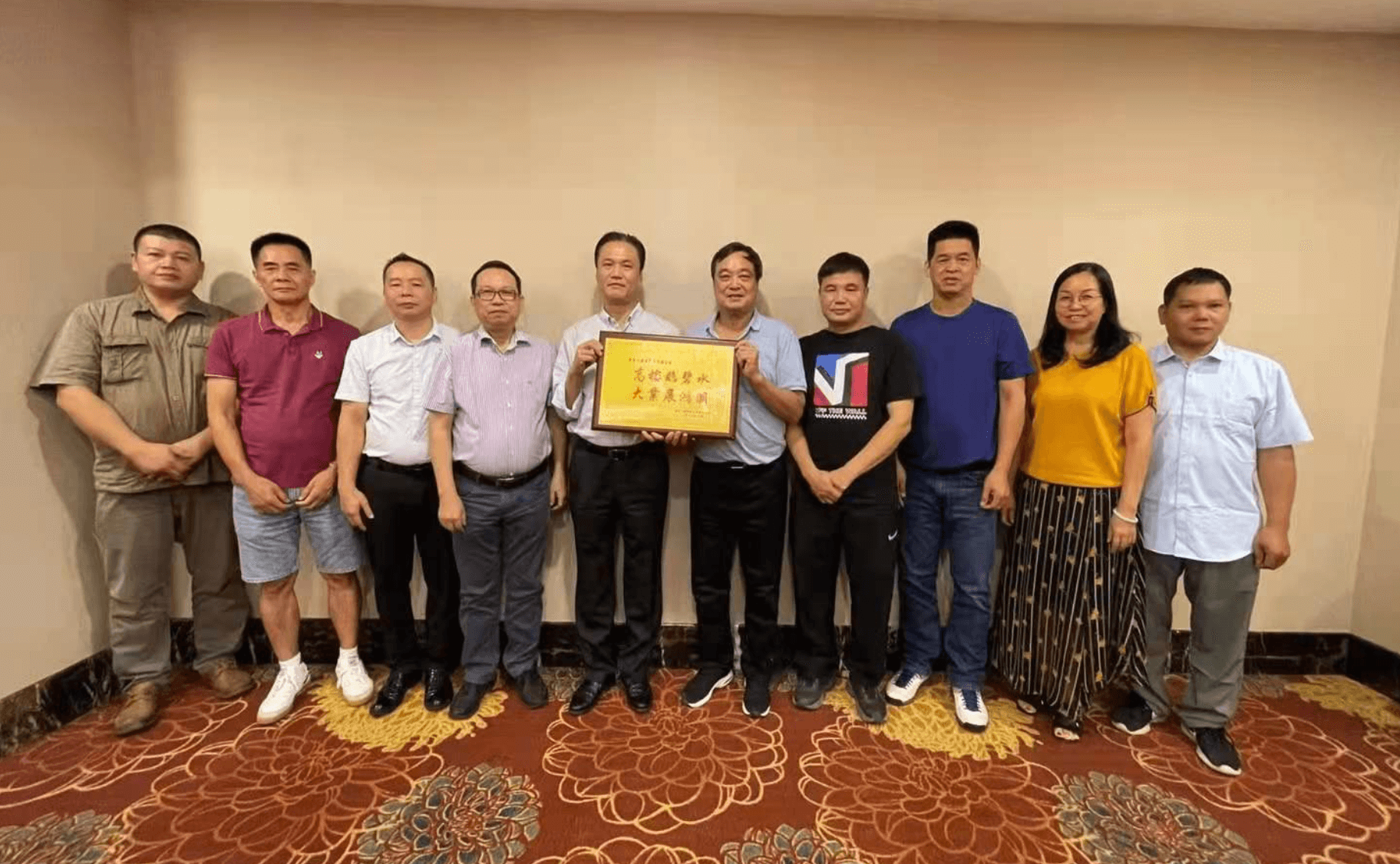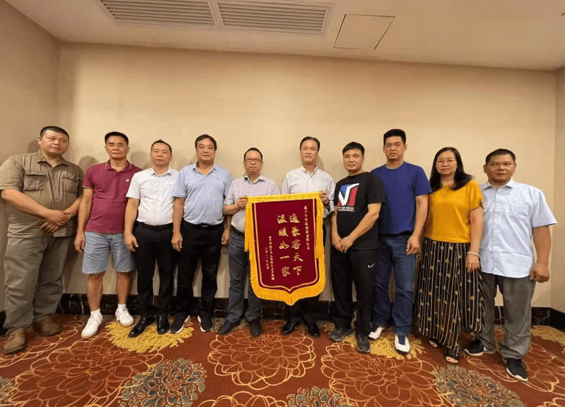 6月15日上午,受委内瑞拉中华工商联合总会冯永贤主席委托,郑联发,莫瑞锋、岑路涛三位副主席及委员一行11人,向恩平逸豪酒店赠送锦旗和纪念牌,得到逸豪酒店总经理梁正歧,董事冯卓棠和销售总监、经理杨小芳的热情接待,双方进行友好亲切座谈餐会。