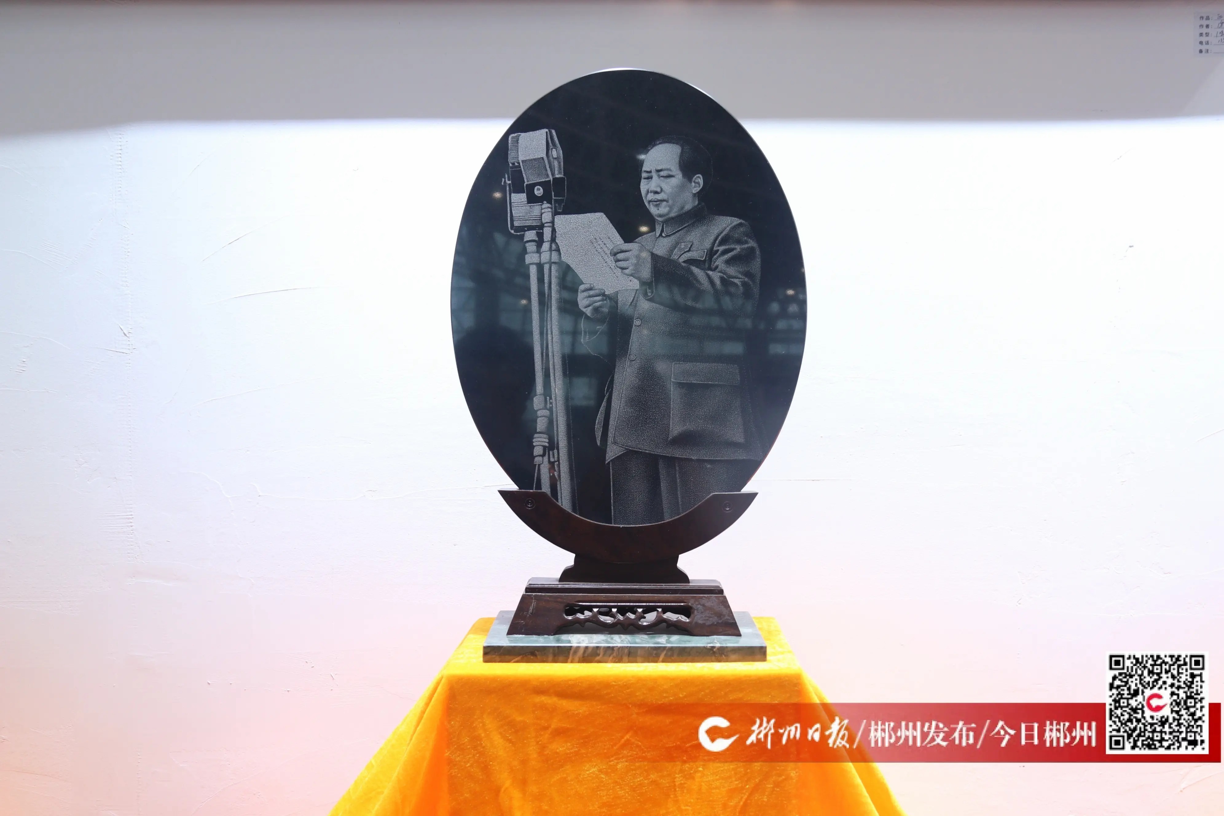 在“一带一路·侨助矿博”华侨华人文化艺术展上,一件名为《开国大典》的影雕作品格外引人注目。其雕刻形象栩栩如生,吸引了众多参观者。