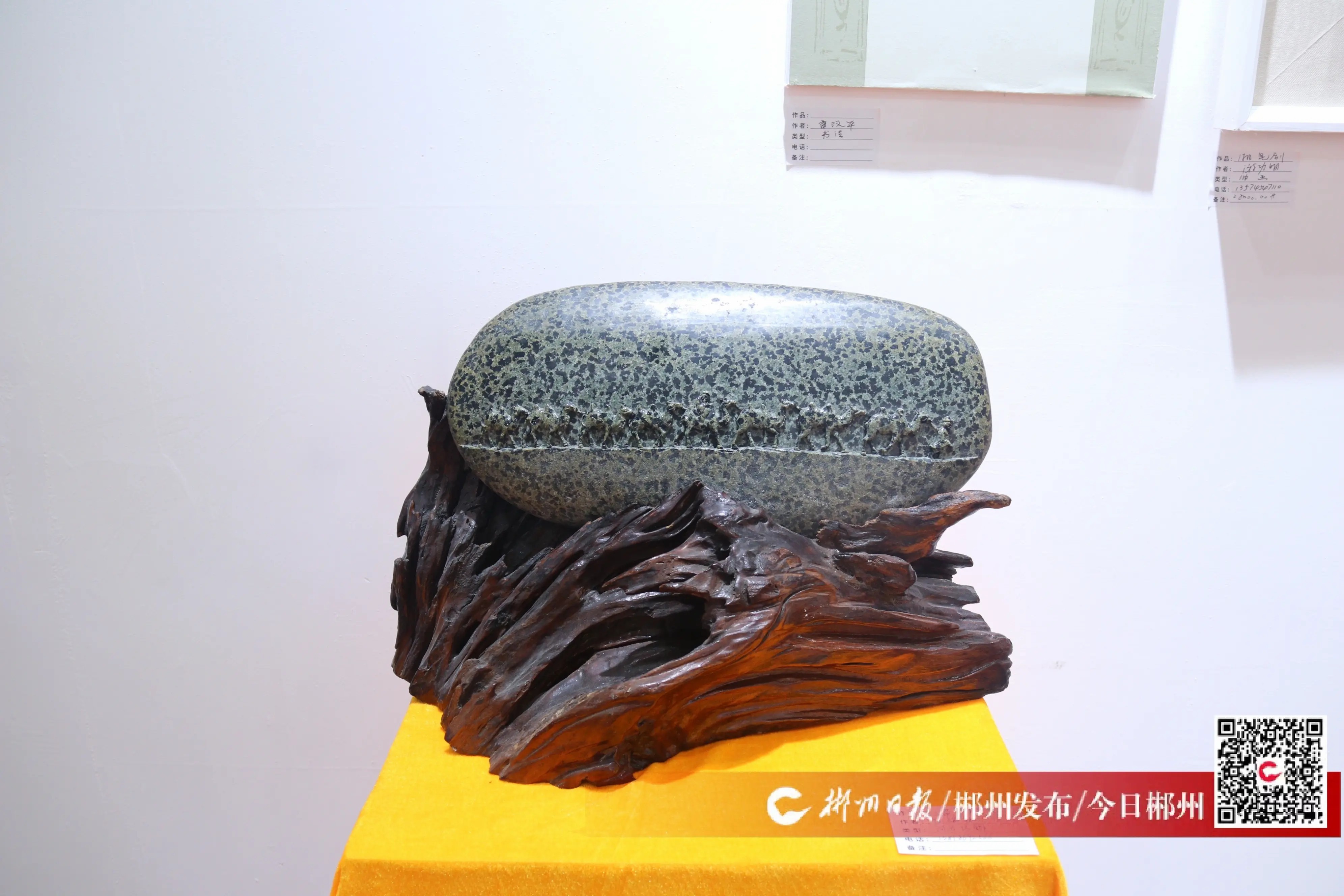 值得一提的是,展品中有一件独特的作品,其原材料来自桂阳县舂陵江。2024年,陈强彬在郴州游玩时,偶然发现了一块布满雪花纹的奇石,被其天然美感所吸引,将其带回泉州。恰逢此次矿博会,他运用当地传统工艺进行打磨,将丝绸之路的景象刻在石头上,最终呈现出一件融合两地特色的艺术品。“郴州拥有丰富的矿物资源,而泉州惠安是世界石雕之都,在雕刻工艺上独具优势,二者的结合将为文化艺术创作带来更多可能。”他说道。
