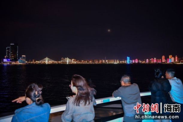 图为游客乘船观赏海口湾夜景。骆云飞摄