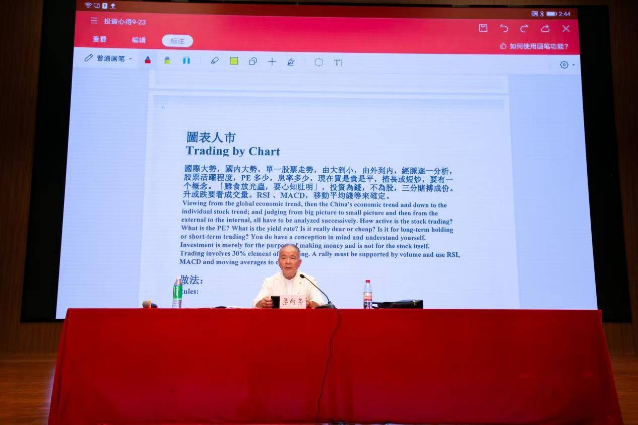 图为2022年9月27日,梁向荣为五邑大学师生讲授金融财经知识讲座