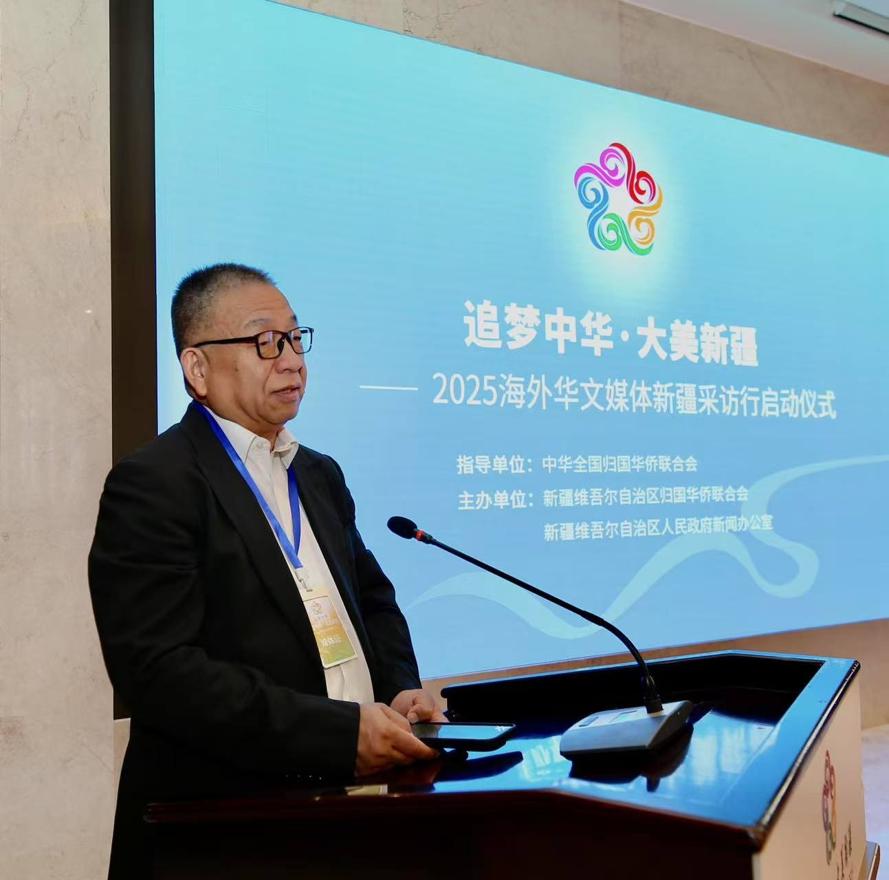 (委国侨报讯)6月20日晚上,“追梦中华• 大美新疆 —2025海外华文媒体新疆采访行”活动在乌鲁木齐启动。来自委内瑞拉、印尼、法国、意大利等14个国家的15家海外华文媒体代表、1家涉侨中央媒体记者出席启动仪式。