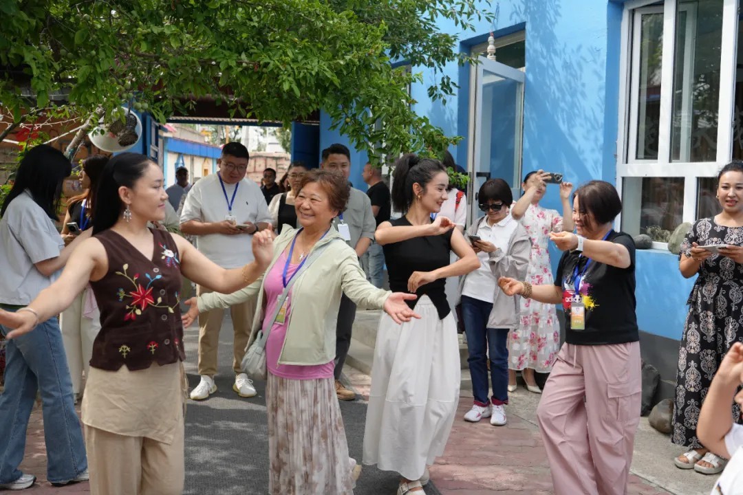 塔城市哈尔墩社区工作人员带领采访团一行参观了⺠族团结展馆,走进多民族家庭,与多民族家庭互动,还参加哈尔墩社区⼗⼀届百家宴活动,和居民一起跳起了舞蹈"黑走马",现场热闹非凡。