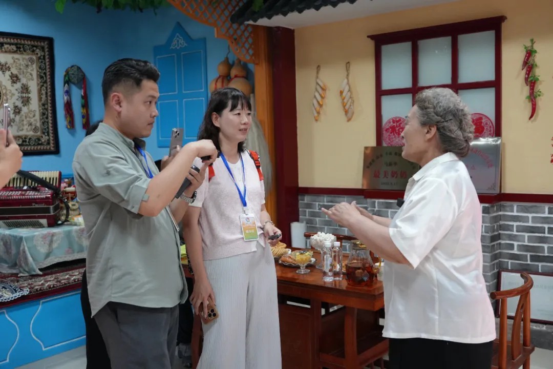 采访团一行在榆柳巷沉浸式体验民族团结氛围。